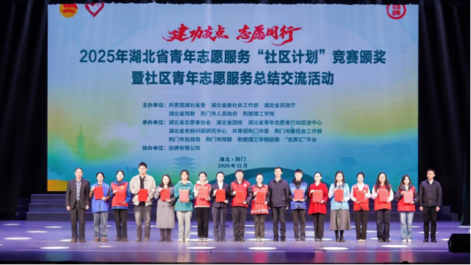 本網(wǎng)訊(通訊員 肖志昕)12月7日,2025年湖北省青年志愿服務(wù)“社區(qū)計(jì)劃”競(jìng)賽頒獎(jiǎng)暨社區(qū)青年志愿服務(wù)展示交流活動(dòng)在荊楚理工學(xué)院舉行。團(tuán)省委書記劉治田出席活動(dòng),荊門市、荊楚理工學(xué)院、省委社會(huì)工作部、省民政廳、省殘聯(lián)有關(guān)負(fù)責(zé)同志參加活動(dòng)。本次大賽全省各市州共18個(gè)社區(qū)、61個(gè)社會(huì)組織(含高校)進(jìn)入決賽。武漢工程大學(xué)“紅細(xì)胞”志愿服務(wù)隊(duì)入圍“美麗小天使”專項(xiàng)賽決賽,最終榮獲銀獎(jiǎng)。 獲獎(jiǎng)團(tuán)隊(duì)師生合影答辯展示環(huán)節(jié),“紅細(xì)胞”...